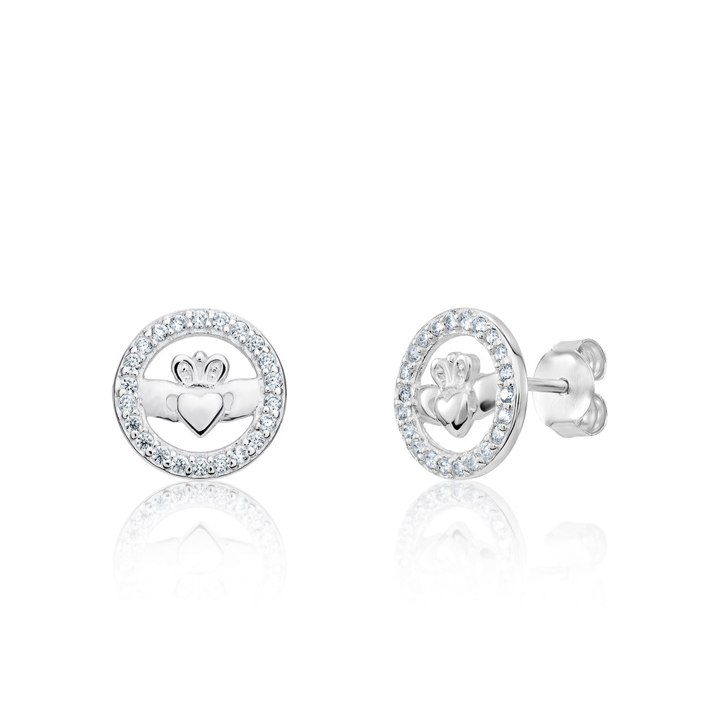 Sterling Silver Celtic Claddagh CZ Stud Earrings