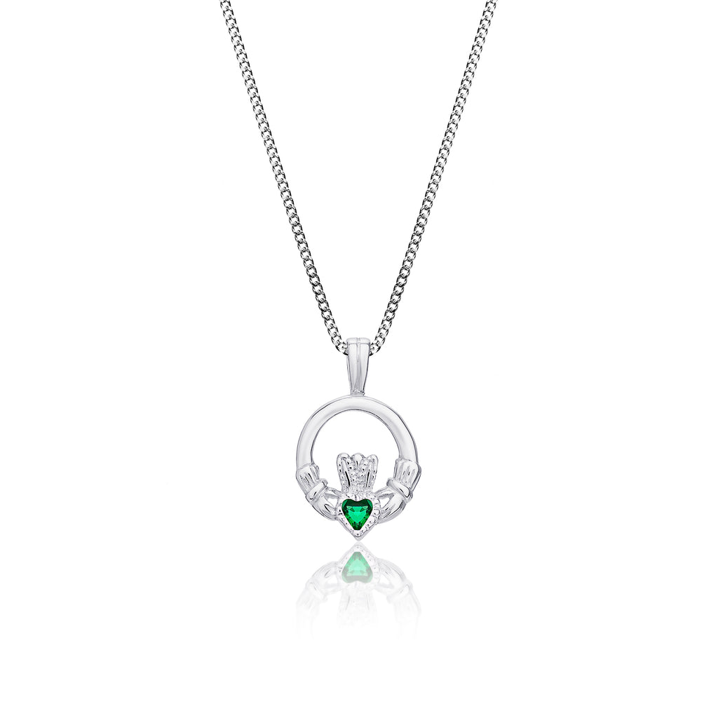 Sterling Silver Green CZ Claddagh Necklace