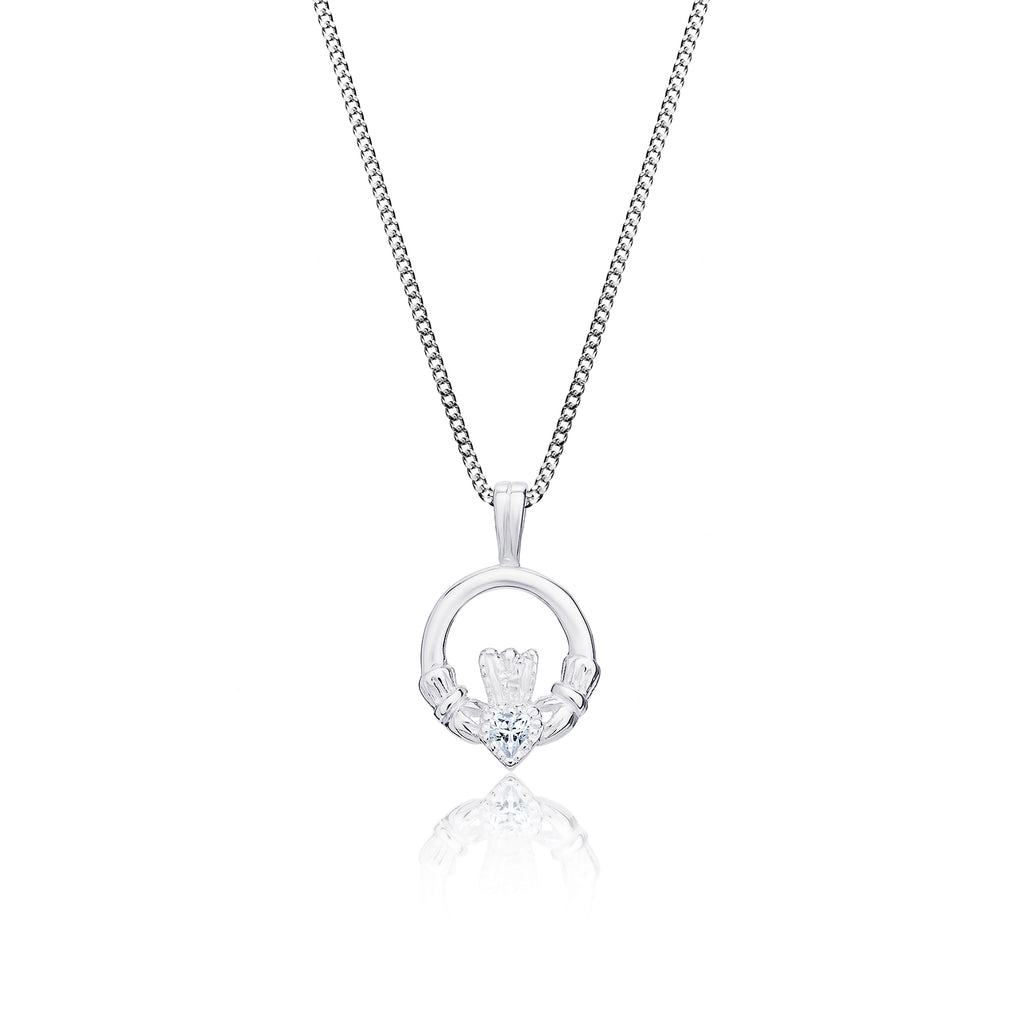 Sterling Silver Cubic Zirconia Claddagh Necklace - Hypoallergenic Jewellery for Ladies - 20mm * 12mm
