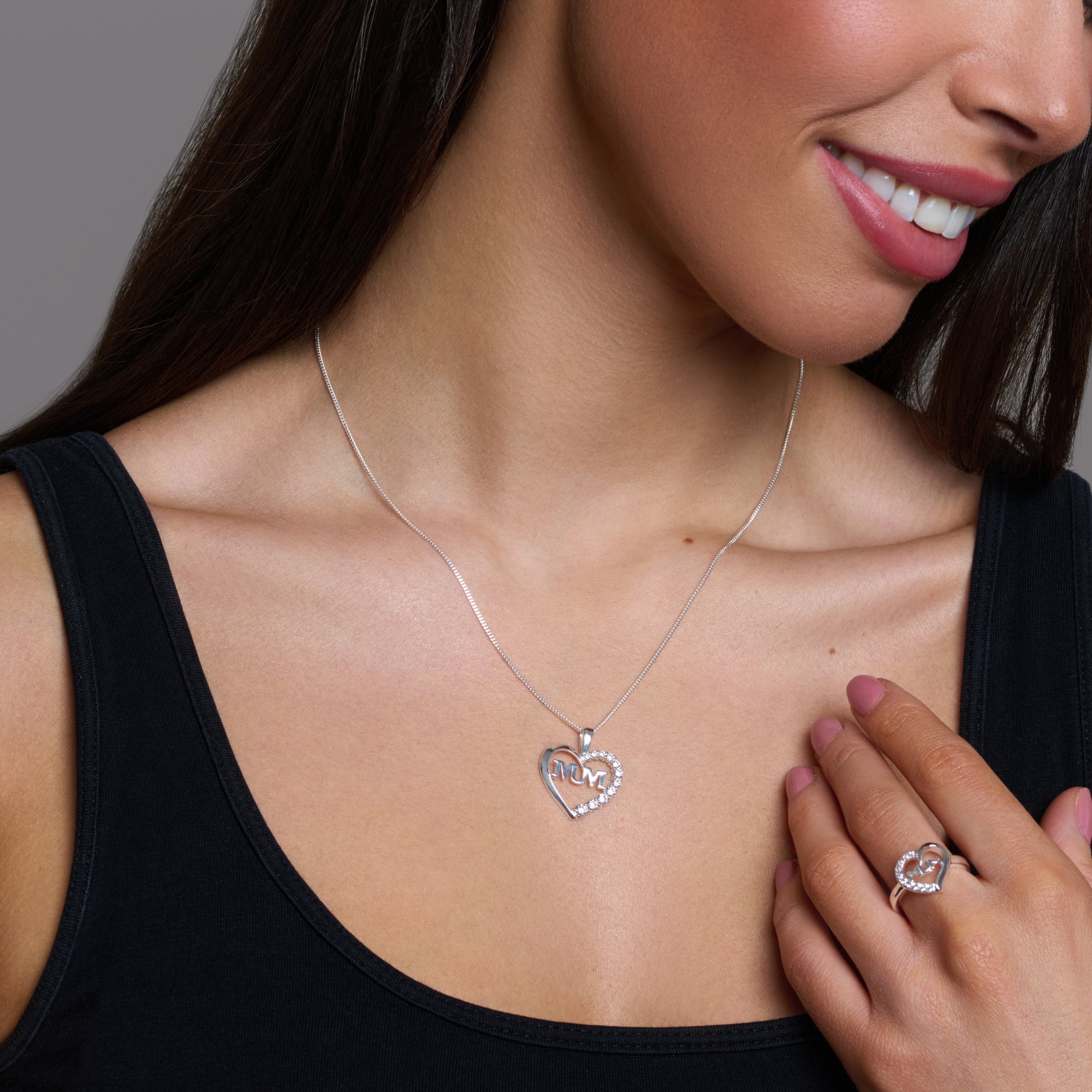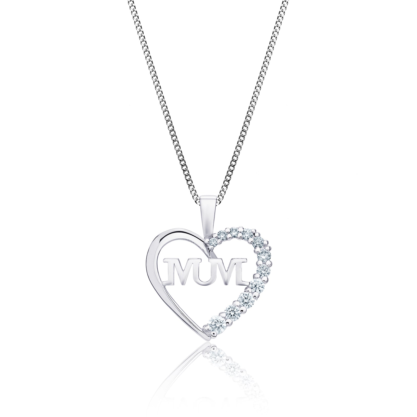Our Sterling Silver Cubic Zirconia Mum Heart Pendant Necklace is a beautiful gift for any occasion. Crafted from solid sterling silver with a high-polish finish, it adds a subtle touch of sparkle to any outfit, day or night. Inspired by vintage designs, this elegant pendant is finely detailed and made to last.