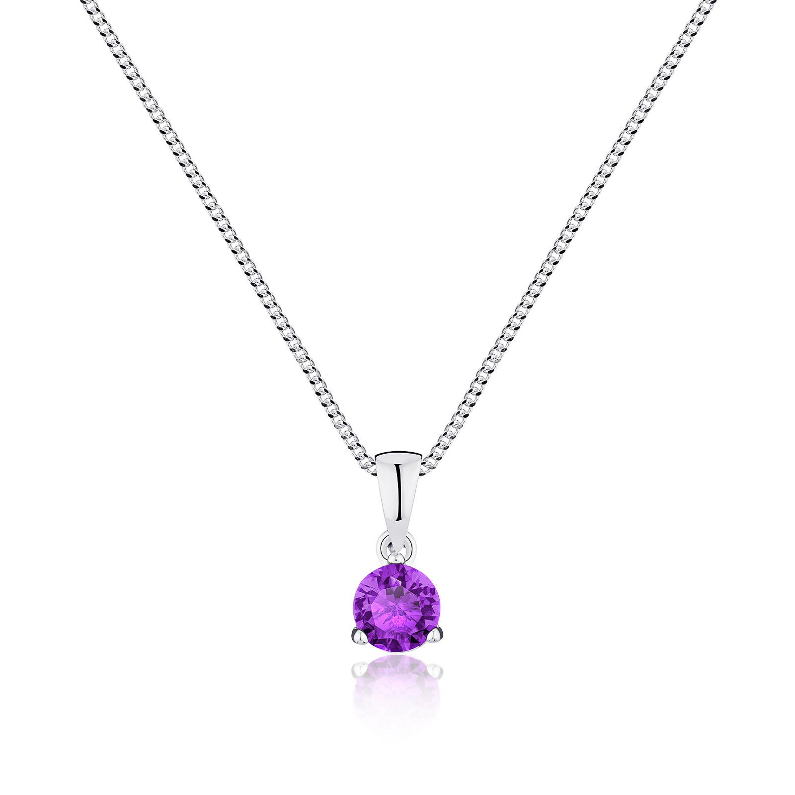 Celebrate February with this elegant 925 sterling silver pendant necklace, showcasing a rich purple 7mm cubic zirconia inspired by amethyst—the classic February birthstone.