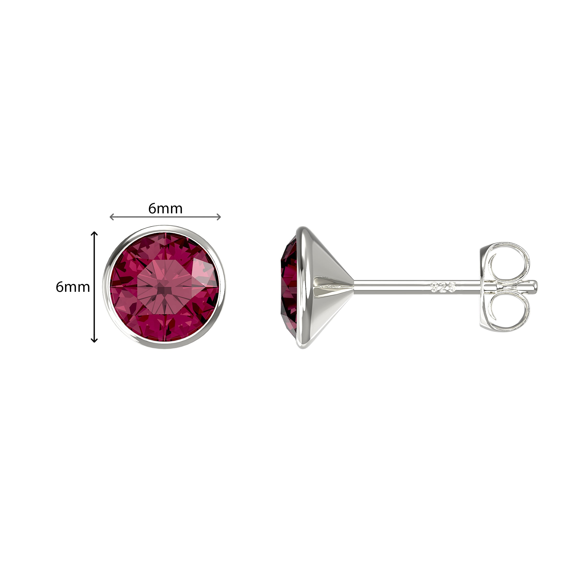 ✨ POLISHING CLOTH INCLUDED: All our silver studs come with a gift box and polishing cloth included in the price. We also promise a guarantee for 12 months against manufacturing defects. So you can buy with confidence. Earrings measure 6mm in diameter and have butterfly backs and feature a round cut Swarovski bezel set stone.