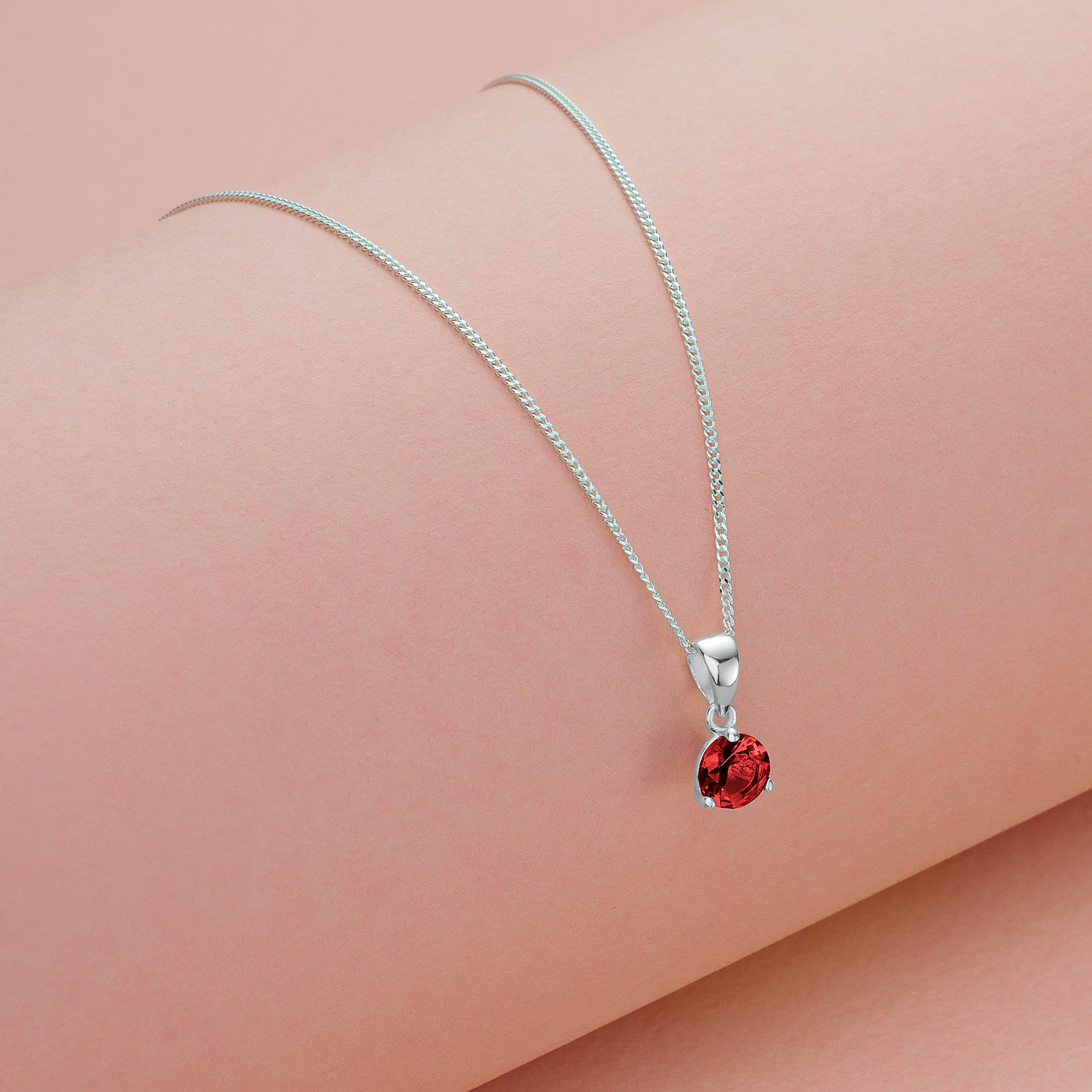 Celebrate January with this elegant 925 sterling silver pendant necklace, featuring a deep red 7mm cubic zirconia inspired by garnet—the classic January birthstone.