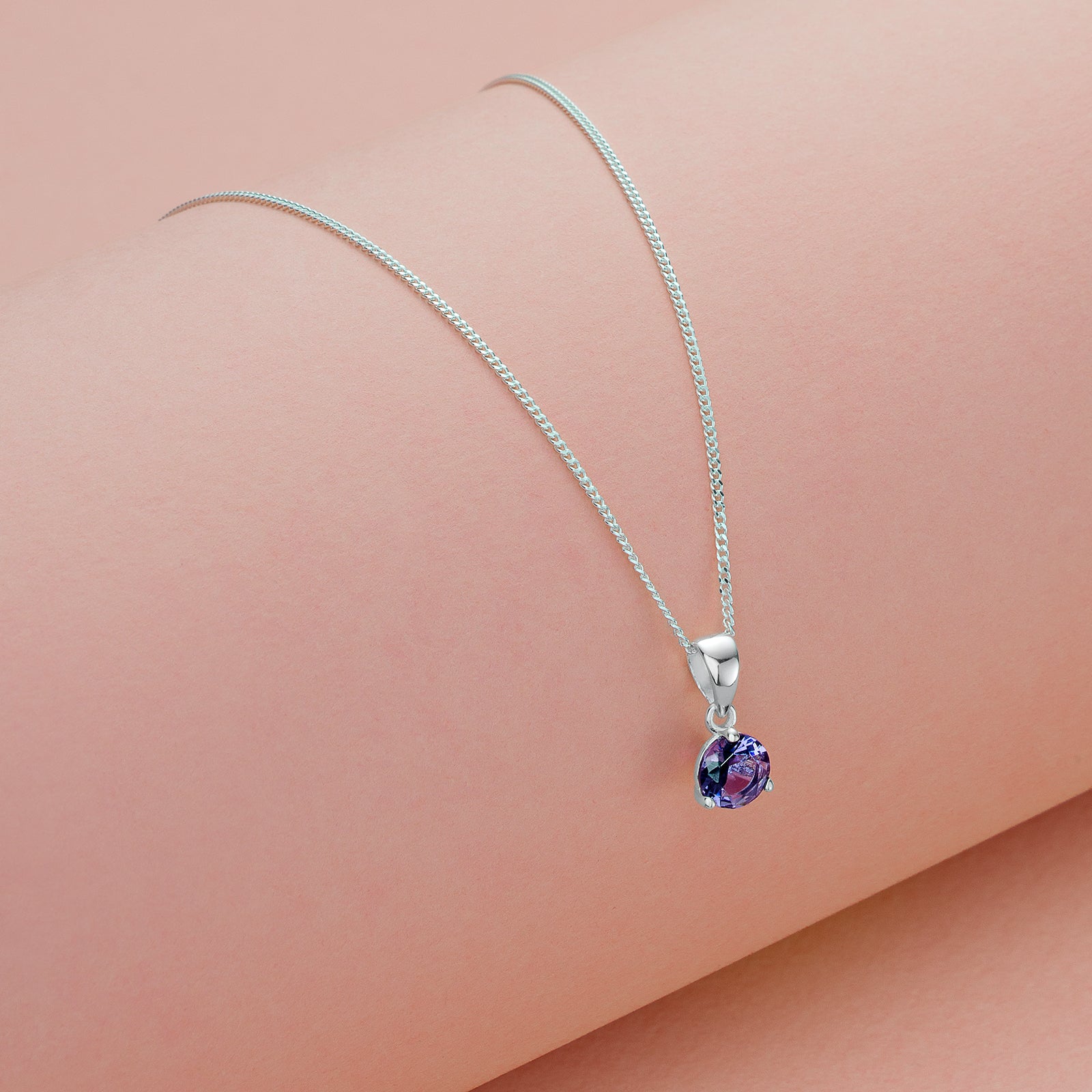 Celebrate June with this elegant 925 sterling silver pendant necklace, featuring a soft lavender 7mm cubic zirconia inspired by light amethyst—the modern June birthstone.