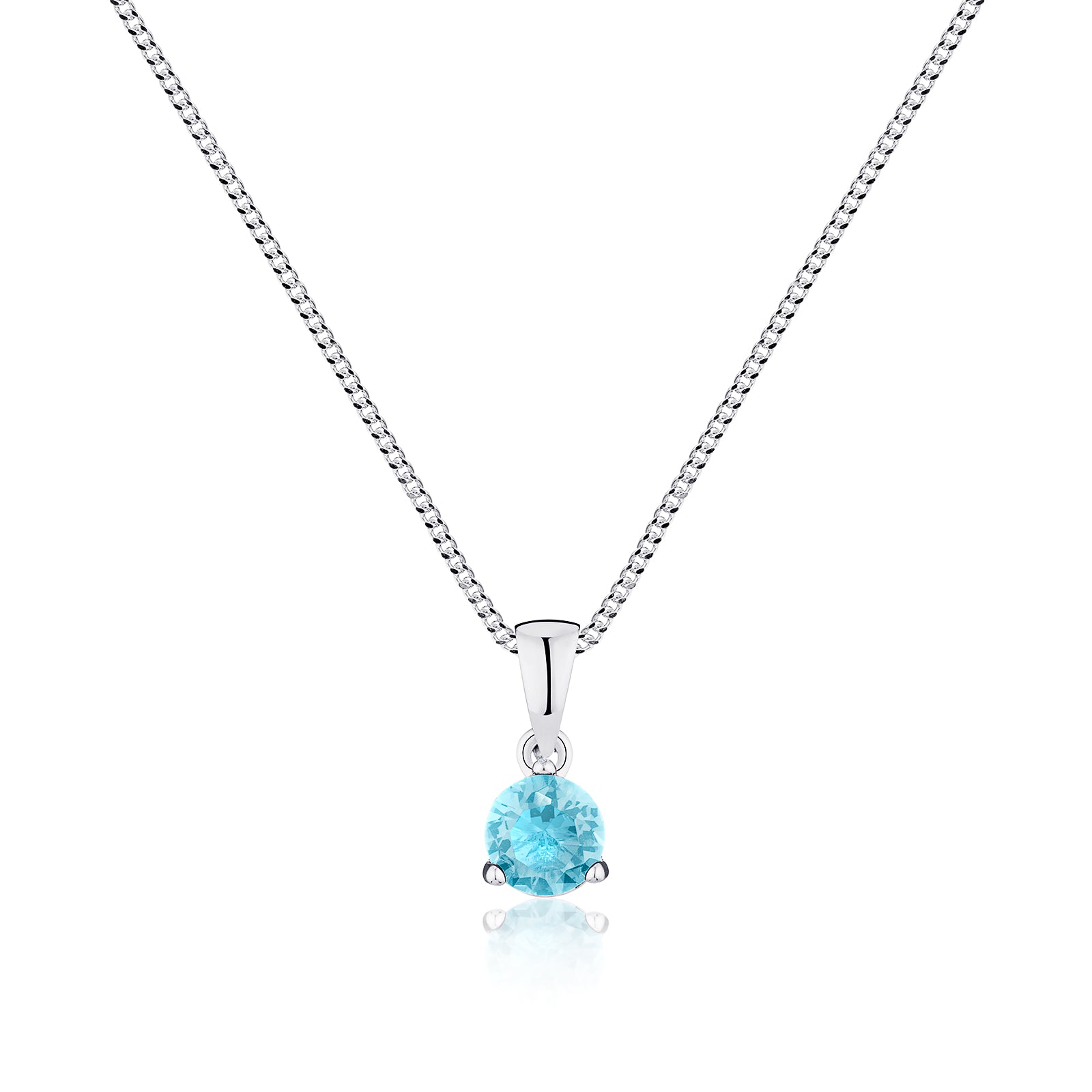 Celebrate March with this elegant 925 sterling silver pendant necklace, featuring a serene light blue 7mm cubic zirconia inspired by aquamarine—the classic March birthstone.