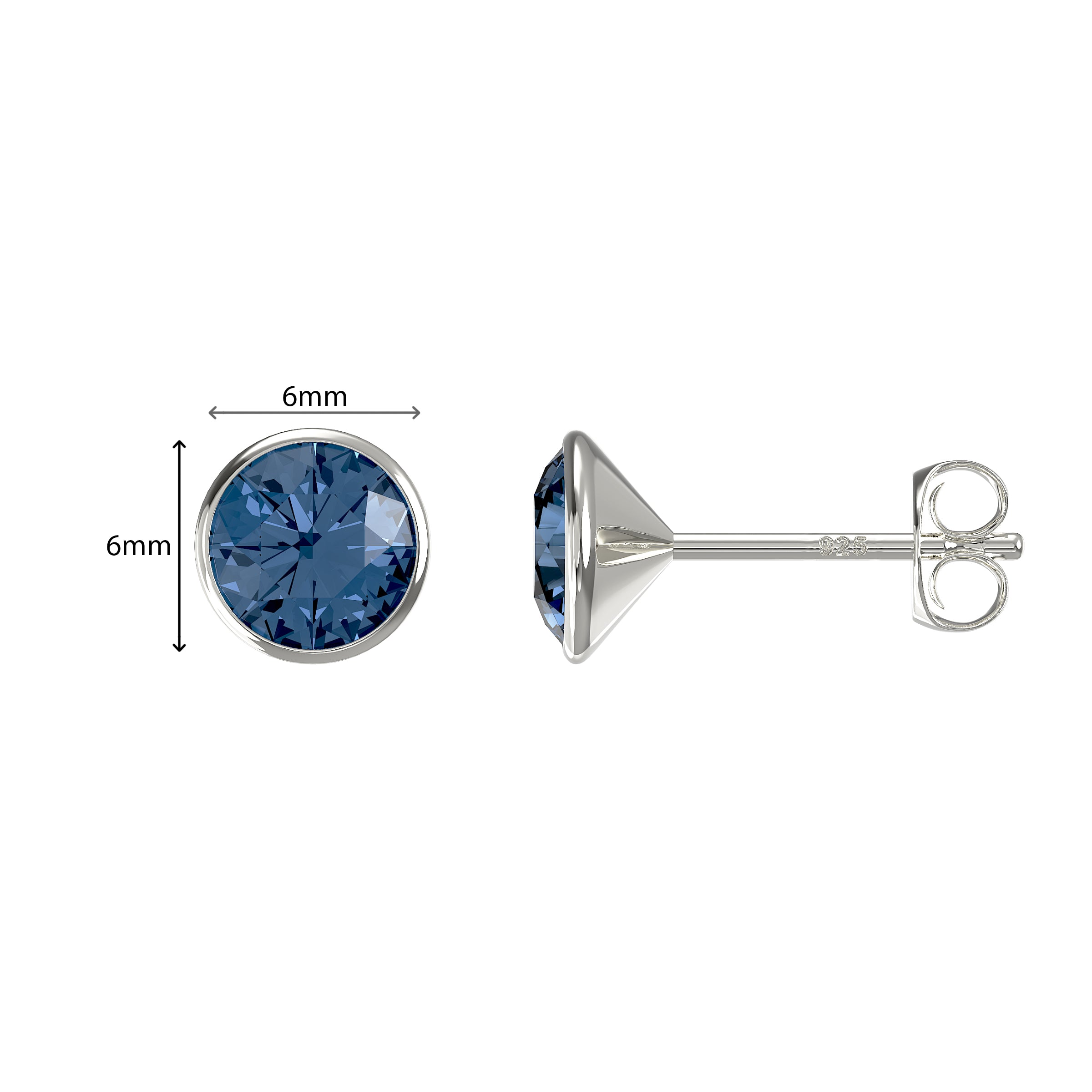 ✨ POLISHING CLOTH INCLUDED: All our silver studs come with a gift box and polishing cloth included in the price. We also promise a guarantee for 12 months against manufacturing defects. So you can buy with confidence. Earrings measure 6mm in diameter and have butterfly backs and feature a round cut Swarovski bezel set stone.